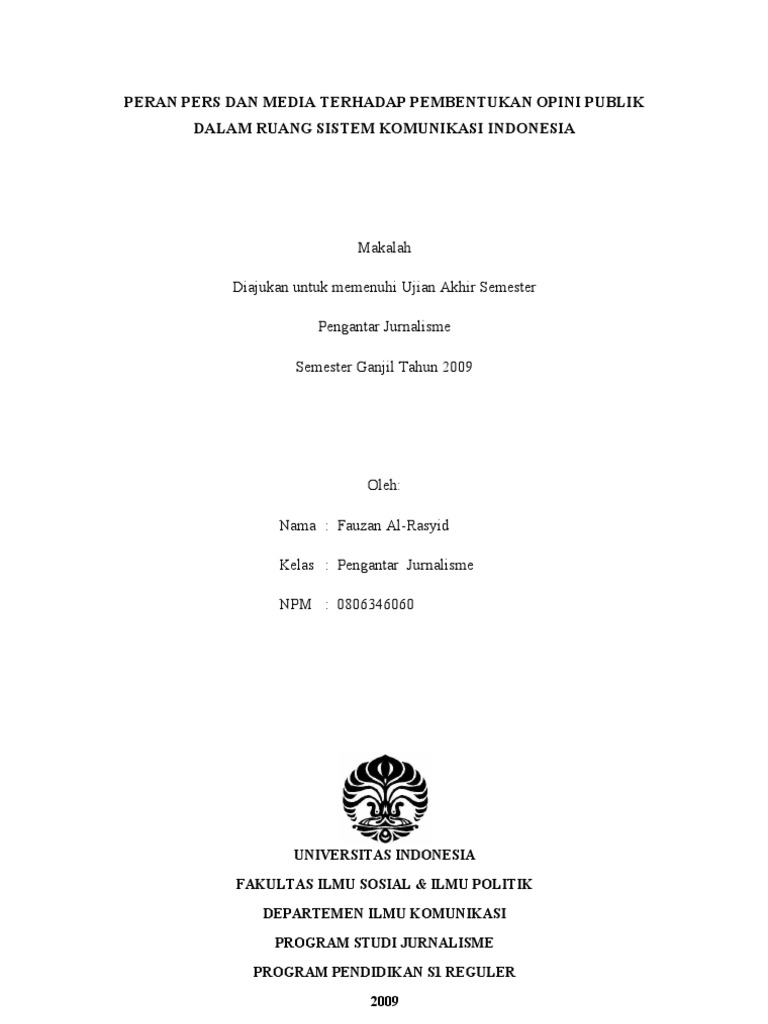 Makalah Komunikasi Peran Pers Dan Media Terhadap Pembentukan Opini Publik