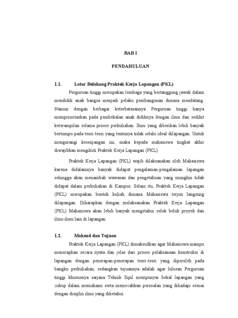 Contoh Pendahuluan Laporan Pkl Teknik Sipil