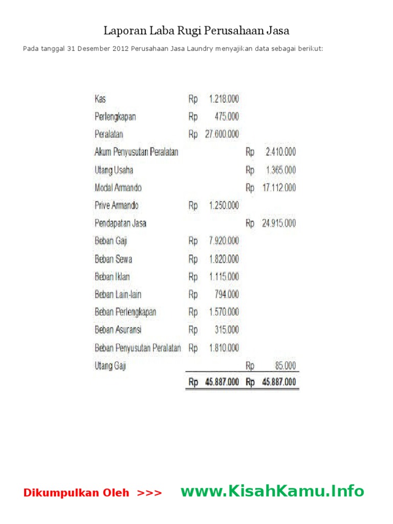 Www Kisahkamu Info Laporan Laba Rugi Perusahaan Jasa
