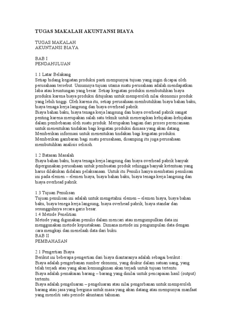 Makalah 1 Akuntansi Biaya Docx Pdf Document