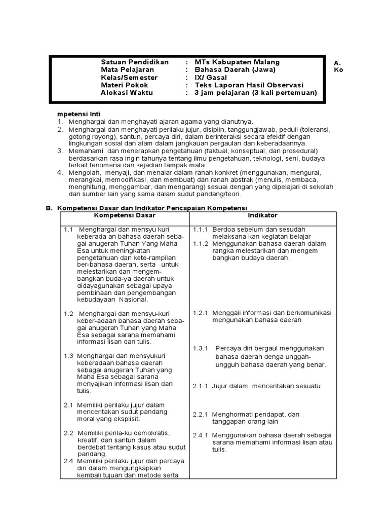 Teks Laporan Asil Observasi Materi Basa Jawa Kelas 9 Cute766